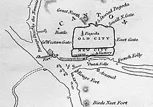 La localisation initiale du fort French Folly se trouve aujourd'hui bien à l'intérieur des terres en raison du remblaiement en terre-plein de la rivière. Le fort dont les canons protégeaient une flotte de jonques de guerre chinoise fut capturé par les Britanniques le quelques jours après la première bataille de Canton durant la seconde guerre de l'opium.