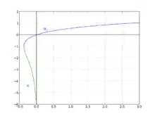ce qui a pour conséquence que chacune des deux branches de W satisfait l'équation différentielle :