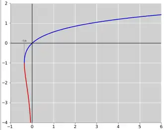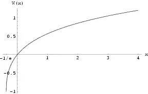 Si nous nous limitons aux arguments réels x ≥ −1e, il existe une fonction et une seule W0 à valeurs réelles telle que