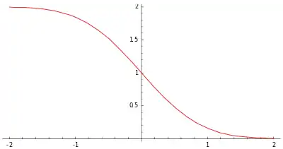 Le nom de fonction d’erreur complémentaire provient du fait qu’elle est le complément à 1 de la fonction d'erreur erf :