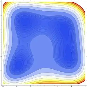 Les emplacements de ces minima peuvent être trouvés analytiquement mais leur expression est complexe.