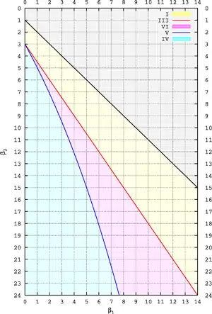 Rhind 1909 décrit un moyen simple de visualiser le paramètre spatial du système de Pearson, adopté par Pearson lui-même par la suite (Pearson 1916). Les types de Pearson sont caractérisés par deux quantités, couramment notées β1 et β2. La première correspond au carré de l'asymétrie : β1 = γ2