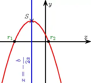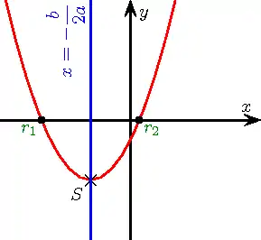 Les nombres et correspondent respectivement à l’abscisse et l'ordonnée du sommet de la parabole représentative du trinôme. Le nombre , quant à lui, est appelé discriminant et souvent noté .