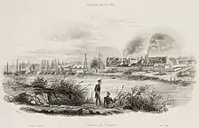 Les travaux commencent le 1er décembre et sont menés rapidement : un fourneau est mis en service à titre d'essai ; il est utilisé pour couler un canon en février 1778. Une forerie temporaire mue par un manège est testée l'été suivant ; la forerie définitive, qui était actionnée par une roue hydraulique en fonte utilisant l'eau du bassin à marée, était terminée en janvier 1779. On établit entre la fonderie et la forerie une voie ferrée de 1 100 m, faite de barreaux de fonte sur traverses en chêne, pour acheminer les canons ; c'est la première de ce genre en France[3]. L'usine est donc dès 1779 en mesure de produire des canons.