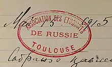 D'après les registres conservés à la Bibliothèque municipale, une association d'étudiants voit le jour en 1909. Sous le nom de Société des Russes de Toulouse (Общество русских в г. Тулузе), elle dispose d'une caisse de secours mutuel, d'une bibliothèque, d'un club ainsi qu'un bureau d'information.