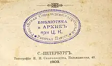 Parmi les ouvrages de la fin du XIXe-début du XXe siècle légués par la Société russe de Toulouse, une vingtaine d'exemplaires porte le tampon de la Bibliothèque-archives du Parti ouvrier social-démocrate de Russie (Российская Социал-демократическая Рабочая Партия - Библиотека и Архив), qui existait à Genève entre 1904 et 1905 (elle avait pignon sur rue au 93, rue de Carouge)[4].