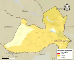 Le retrait-gonflement des sols argileux est susceptible d'engendrer des dommages importants aux bâtiments en cas d’alternance de périodes de sécheresse et de pluie. 80,6 % de la superficie communale est en aléa moyen ou fort (52,8 % au niveau départemental et 48,5 % au niveau national). Sur les 483 bâtiments dénombrés sur la commune en 2019, 430 sont en aléa moyen ou fort, soit 89 %, à comparer aux 70 % au niveau départemental et 54 % au niveau national. Une cartographie de l'exposition du territoire national au retrait gonflement des sols argileux est disponible sur le site du BRGM[16],[Carte 2].