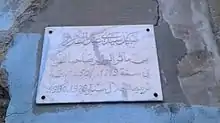 Plaque en marbre indiquant les dates de fondation et de restauration
