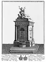 En 1719, selon la mode de l'époque, la statue est dorée et une grille en fer entoure le monument. Cette grille a été enlevée en 1751.