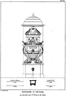 - Vue de la fontaine Saint-Victor, gravure d'après un tableau d’Étienne Bouhot (1819) sur le site Gallica.