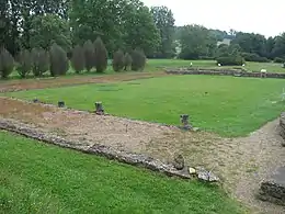 On y a relevé les plus anciens aménagements connus de site thermal, le plus ancien datant du Ier siècle, assez sommaire[20]. Des travaux d'agrandissement des thermes sont réalisés au Ier siècle : vestiaire, bains à vapeur ou tiède… Au IIe siècle, l'influence romaine se faisant plus forte, l'établissement est agrandi, devenant des thermes mixtes hommes/femmes et un système de chauffage est créé. Des extensions sportives sont également réalisées comme la palestre pour la gymnastique. Cet établissement thermal étant unique dans la région, il attirait des clients venus d'une distance assez lointaine[19].
