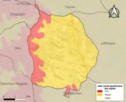 Le retrait-gonflement des sols argileux est susceptible d'engendrer des dommages importants aux bâtiments en cas d’alternance de périodes de sécheresse et de pluie. La totalité de la commune est en aléa moyen ou fort (67,7 % au niveau départemental et 48,5 % au niveau national). Sur les 285 bâtiments dénombrés sur la commune en 2019, 285 sont en aléa moyen ou fort, soit 100 %, à comparer aux 72 % au niveau départemental et 54 % au niveau national. Une cartographie de l'exposition du territoire national au retrait gonflement des sols argileux est disponible sur le site du BRGM[30],[Carte 2].
