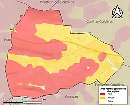 Le retrait-gonflement des sols argileux est susceptible d'engendrer des dommages importants aux bâtiments en cas d’alternance de périodes de sécheresse et de pluie. 98,9 % de la superficie communale est en aléa moyen ou fort (75,2 % au niveau départemental et 48,5 % au niveau national). Sur les 317 bâtiments dénombrés sur la commune en 2019, 317 sont en aléa moyen ou fort, soit 100 %, à comparer aux 94 % au niveau départemental et 54 % au niveau national. Une cartographie de l'exposition du territoire national au retrait gonflement des sols argileux est disponible sur le site du BRGM[26],[Carte 3].