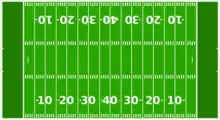 Le football à six est un sport au rythme rapide se jouant sur un terrain de 80 yards (73 mètres) de long sur 40 yards (37 m) de largeur, au lieu des 100 yards sur 160 pieds (91 mètres sur 48,8) des terrains de football conventionnels.