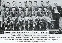 Après une saison en Honneur, le FC Auch réintègre l'élite du rugby français grâce à un recrutement judicieux, étant sacré champion de France Honneur (la seconde division de l’époque) en 1947 après une victoire 5-3 sur le SO Chambéry sous la direction de l’ancien international Vincent Graule. L’équipe du FCA s’était présentée dans la composition suivante : Gimenez, Dutrey, Bentanery, Carrère, Hebrard, Cabanne (o), Theux (m), Ludwizack, Romulus, Penille, Laguerre, Saldana, Laurent, Viguié, Ginabat.
