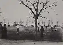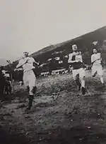 Par ailleurs, en octobre 1913[3], une association ambitieuse voit le jour à Vesoul : la section football de la société omnisports de l'Avant-garde de la Motte, association sportive fondée le 8 juin 1910 par l'abbé Maurice-Louis Dubourg, qui propose également entre autres la pratique de la gymnastique et des sports athlétiques[4]. A cette époque, l'AGM et sa section football étaient affiliées, comme une dizaine d'autres clubs dans le département, à la fédération gymnastique et sportive des patronages de France, organisation nationale créée en 1898 dont l'objectif était d'encadrer les associations œuvrant dans la préparation militaire et sportive. L'équipe de football de l'AGM, qui évolue alors en bleu et blanc, réussit à monter deux équipes séniores dans les années 1910, et même une troisième au début des années 1920 et à rivaliser avec certaines grandes équipes de la région en évoluant dans le championnat de Franche-Comté des Patronages[5],[6],[7],[Note 2]. L'AGM football inaugure même son propre terrain plus tard, le 30 juillet 1922 devant plus de 2 000 spectateurs : le stade du Sacré-Cœur, situé derrière l'église du Sacré-Cœur[A 1],[8]. Quelque temps plus tard, en 1926, l'AGM, qui contribua fortement à la popularisation du football à Vesoul, mit en sommeil sa section football pour ouvrir une section basket-ball[A 2], qui devenu peu de temps après champion de Haute-Saône F.F.A. et champion de Franche-Comté F.G.S.P.F.[A 3].