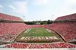 Les stades utilisés aux États-Unis par les franchises professionnelles ou les équipes universitaires de football américain sont souvent d'immenses enceintes dont certaines comptent parmi les plus grandes au monde. En 2016, 38 073 667 spectateurs ont assisté aux 873 matchs concernant la Division I FBS, soit une moyenne de 43 612 spectateurs par match[15]. Dans ce domaine, tous sports confondus au niveau mondial, seule la NFL fait mieux (69 487 en 2016) (voir : Liste des affluences sportives).