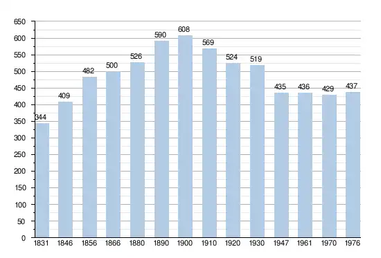- Sources:INS, Rem:1831 jusqu'en 1970=recensements, 1976= nombre d'habitants au 31 décembre