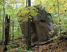 Finalement, notons qu'on trouve dans cette forêt un peuplement composé de feuillus intolérants qui est d'une superficie de 12,6 ha. Celui-ci n'a guère plus de 30 ans et est qualifié de non homogène car le terrain était utilisé il n'y a pas si longtemps pour fin d'agriculture, de pâturage ainsi que comme voie d'accès[12].