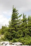 Les épinettes rouges sont présentes dans une pessière de 32,8 ha et une sapinière de 25,6 ha. La pessière figure sur des pentes abruptes au sommet de la montagne. Dans ce milieu, le sol est mince et le drainage rapide. Les épinettes rouges peuvent y atteindre une hauteur de 18 mètres et un diamètre moyen de 30 à 40 cm. Certains de ces arbres ont 245 ans d'âge. Dans la sapinière située en bas de pente, les épinettes n'ont guère plus de 70 ans à cause de la proximité de l'ancienne résidence familiale et des activités agricoles qui s'y pratiquaient à une certaine époque.