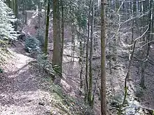 Les vestiges des anciennes abbayes se situent dans la forêt sur le plateau à environ 680 mètres d'altitude et datent du XIe siècle. Cet endroit fut le lieu originel du prieuré et l'on peut encore distinguer des salles grâce aux restes de pans de murs. Les ruines se situent au bord du sentier des Vieilles Abbayes[10].