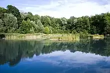 Ces étangs artificiels, d'une surface respective de 2 ha et 1,3 ha, ont été aménagés au cœur de la forêt dans d'anciennes carrières de marnes, qui donnent ici une coloration bleue. Ils atteignent pour cette raison une profondeur de 20 à 30 m et la baignade y est interdite pour des raisons de sécurité. On peut en revanche y pratiquer la pêche.