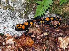 Parmi les amphibiens, la salamandre tachetée de Corse (Salamandra corsica) peut être aperçue dans les milieux forestiers humides qu'elle affectionne.