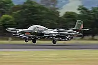 | Embraer Super Tucano | Avion d'entraînement, Avion d'attaque au sol, COIN | EMB 314 | 8(10) | Livraison : à terminer d'ici 2012, à raison de 2 unités par mois. Une commande initiale de 24 unités a été réduite à 18 en mai 2010[4]. | ![]() | |