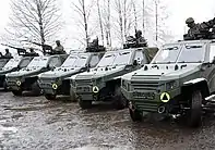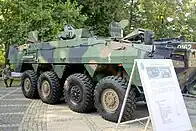 Version local du Patria 8x8 produit sous licence par l'entreprise Rosomak.SA. Plusieurs versions du véhicule existent[22]. | |
