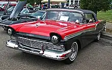 Pour 1957, le nouveau style a donné un look plus long, plus large, plus bas et plus élégant avec des ailerons bas et pointus. Les nouvelles proportions et le style moderne ont été un succès auprès des clients dans la mesure où Ford a devancé Chevrolet en 1957 pour la première fois depuis 1935[2]. Un nouveau niveau de finition supérieur a été ajouté, la Fairlane 500 dont le chiffre de production dépasse les Fairlane ordinaires de quatre contre un[3]. Pour la première fois, la gamme Custom de niveau inférieur avait un empattement plus court que la Fairlane. Les moteurs étaient en grande partie les mêmes que l'année précédente. La grande nouveauté pour 1957 a été l'introduction du modèle Fairlane 500 Skyliner cabriolet avec toit rigide rétractable électriquement, qui s'articulait et se repliait dans le coffre d'une simple pression sur un bouton.