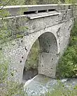 Celui du canal de Pont-du-Fossé, le plus ancien, est proche de Pont-de-Frappe. Construit entre 1869 et 1882, il a cessé d'être utilisé en 1969. C'est un pont en maçonnerie en pierres de taille de moyen appareil de 70 mètres de longueur. Il comporte deux avant-ponts et six arches de plein cintre, dont la principale a 5 mètres d'ouverture et domine le torrent de 9 mètres. Le canal passait au sommet à l'air libre. L'ouvrage, fortement détérioré, a été entièrement restauré entre 2009 et 2013 à l'initiative d'une association locale[26], avec l'aide des collectivités publiques (communes, département, région, état) et de quelques mécènes. Interdit d'accès pendant plusieurs années, il est désormais proposé à la visite dans le cadre des parcours de découverte du « Pont blanc », sous le nom d'« Aqueduc des Gorges ».