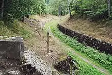 La plateforme, avec sa tranchée en courbe et ses deux viaducs intacts, est aménagée pour la promenade.