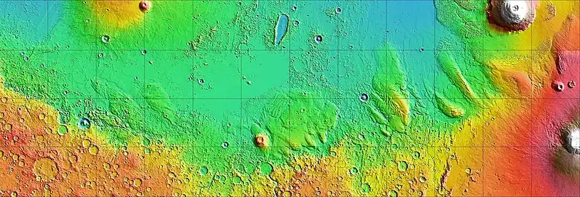 - MGS Mars Orbiter Laser Altimeter Carte du quadrangle d'Elysium (USGS MC-15).