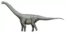 Un mamenchisauridé avec un cou particulièrement long qui représente la moitié de la longueur de l'animal[2]. C'est l'un des plus grands dinosaures connus, de 35 mètres de long, dont 18 mètrespour le cou. | ||||