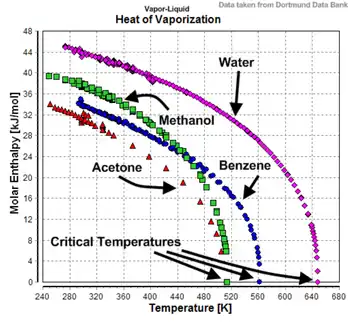 La pression de vaporisation d'un liquide pur varie en fonction de la température selon la formule de Clapeyron[3] :