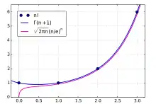 - Mais on peut aussi démontrer directement, et de façon élémentaire, un résultat plus précis sur la fonction Γ d'Euler[5], dont le cas particulier pour la factorielle s'écrit :