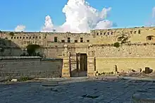 Saint-Elme est alors un petit ouvrage en étoile à quatre pointes, bâti sur le roc, entouré de fossés et renforcé par un cavalier sur sa façade maritime[2]. Il a toutefois pour grave défaut d'être surplombé par le mont Xiberras[2]. Le grand maître Jean de Valette lui adjoint une demi-lune pour le renforcer du côté de Marsamxett[2]. À peine les travaux terminés, Malte est attaquée par la flotte ottomane en mai 1565. Le fort Saint-Elme est le premier attaqué : les Turcs installent leur artillerie principale sur le mont Xiberras et soumettent l'ouvrage à un intense bombardement[3]. La demi-lune est prise d'assaut une semaine plus tard[4]. Un assaut direct est toutefois repoussé et La Valette dépêche des renforts dans l'espoir de faire tenir le fort le plus longtemps possible[5]. Le fort Saint-Elme ne capitule qu'un mois plus tard, presque entièrement détruit sur trois de ses côtés, après avoir concentré sur lui une bonne partie des ressources turques. Sa résistance joue un rôle majeur dans l'échec du siège de Malte[6].