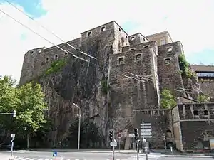 Passage entre le fort St-Jean à droite et le Grenier d'abondance à gauche, pont Kœnig en face.