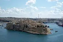 Durant le Grand Siège de 1565, le fort subit de nombreuses attaques, des bombardements et canonnades en provenance des collines Sainte-Marguerite et de Corrodino mais résiste finalement aux assauts ottomans. Le Sperone résiste aussi grâce au renforcement par de grands caissons remplis de terre, demandés à ses galériens par le chevalier de Valence, Francesco de Sanoguera[6]. En souvenir du Grand Siège, la fortification du côté de la crique des Français, là où se trouvait alors l'entrée du fort, porte le nom de bastion de Ruffo, du nom de don Carlo Ruffo qui fut tué en y commandant la défense[7], la fortification du côté de la Maċina prend le nom de bastion des Maltais, bastion défendu avec courage et détermination par la population maltaise qui avait trouvé refuge à Senglea. La fortification en dessous du fort est nommé bastion des Italiens (sous entendu de la langue d'Italie). Aujourd'hui l'entrée de la ville de style baroque, déplacée à la fin du XVIIe siècle du côté de la Maċina s'appelle porte des Italiens.
