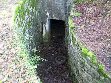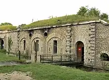 Le magasin de Planoise fut quant à lui bâti en 1889, à 450 mètres d'altitude[20]. Installé dans le roc, il est situé pratiquement sous la batterie nord-est, et sous le front de taille de la seconde carrière utilisée pour la construction des fortifications du plateau[20]. L'édifice se compose ainsi : une cour extérieure, deux accès parallèles, une galerie transversale ainsi que deux pièces de stockage[20]. Le bâtiment est jugé dans un excellent état malgré une soufflure[Note 14] de grande importance dans le couloir d'accès gauche, et il est libre d'accès[20].