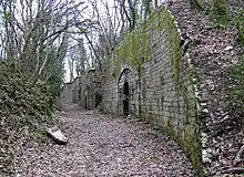 La batterie nord-ouest de Planoise est située à 489 mètres d'altitude, sur la tête sud-ouest de l'enveloppe du fort principal[36]. Elle se compose de cinq éléments maçonnés (six en comprenant l'abri-caverne annexe) engoncés au sein d'une dense buxaie[Note 11], tous édifiés en 1877[36]. La batterie possède un glacis offrant un large point de vue sur Avanne-Aveney, dont une partie est aménagée en position d'infanterie[36]. Les ouvrages sont tous globalement jugés en bon état de conservation, et sont librement accessibles[36].
