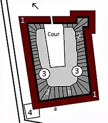 - Gorge : partie située entre les saillants représentant l'arrière de l'ouvrage, et comportant notamment une ou plusieurs entrées.