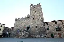 Il reste quelques longs pans de murailles autour de l'ancienne ville, mais aucune des deux portes n'a été conservée : la Porta Fiorentina a été détruite pendant la Première guerre mondiale et remplacée par une ouverture de style. Le donjon est conservé en excellent état, avec deux bâtiments carrés et de hauts murs.