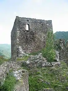 À l'intérieur des murs se trouvent d'importants vestiges du palais et de l'église Saint-Georges. De plan rectangulaire, l'église est un édifice à nef unique. De nombreux éléments architecturaux la rattachent à l'architecture gothique. L'édifice était peint[2],[3]. À l'est de l'église se trouve une citerne et, le long des remparts, se trouvaient des bâtiments pour le logement des soldats ainsi que d'autres bâtiments pour d'autres usages[2],[3].