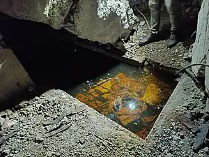 Soute rectangulaire dans le sol, spécifique à ce Regelbau 502.