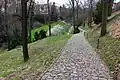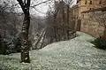 Le fossé couvre une superficie de plus de 8 hectares le long du ruisseau Brusnice . Le fossé ne servait à l’origine que de barrière défensive, mais sous le règne de l’empereur Rodolphe II, des cerfs y étaient implantés et chassés, d’où son nom. Les douves sont divisées en quais supérieur et inférieur du pont Poudrier avec un tunnel piétonnier. Divers événements culturels et sociaux ont lieu occasionnellement dans le fossé aux Cerfs.