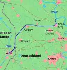 Le canal commence à Rheinberg (51° 34′ 39″ N, 6° 35′ 40″ E). De là, il progresse vers l'Ouest, au nord de Kamp-Lintfort, longeant l'Abbaye de Kamp, entre Sevelen et Issum en direction de Gueldre.