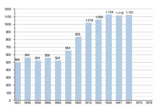• Sources : INS, Rem. : 1831 jusqu'en 1970 = recensements, 1976 = nombre d'habitants au 31 décembre.