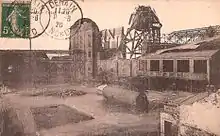 La fosse Renard après la guerre. Le puits no 1 est à gauche, le puits no 2 à droite. | |