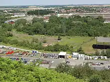 Le carreau de fosse est occupé par diverses entreprises, dont un ferrailleur, une casse, et deux concessionnaires.